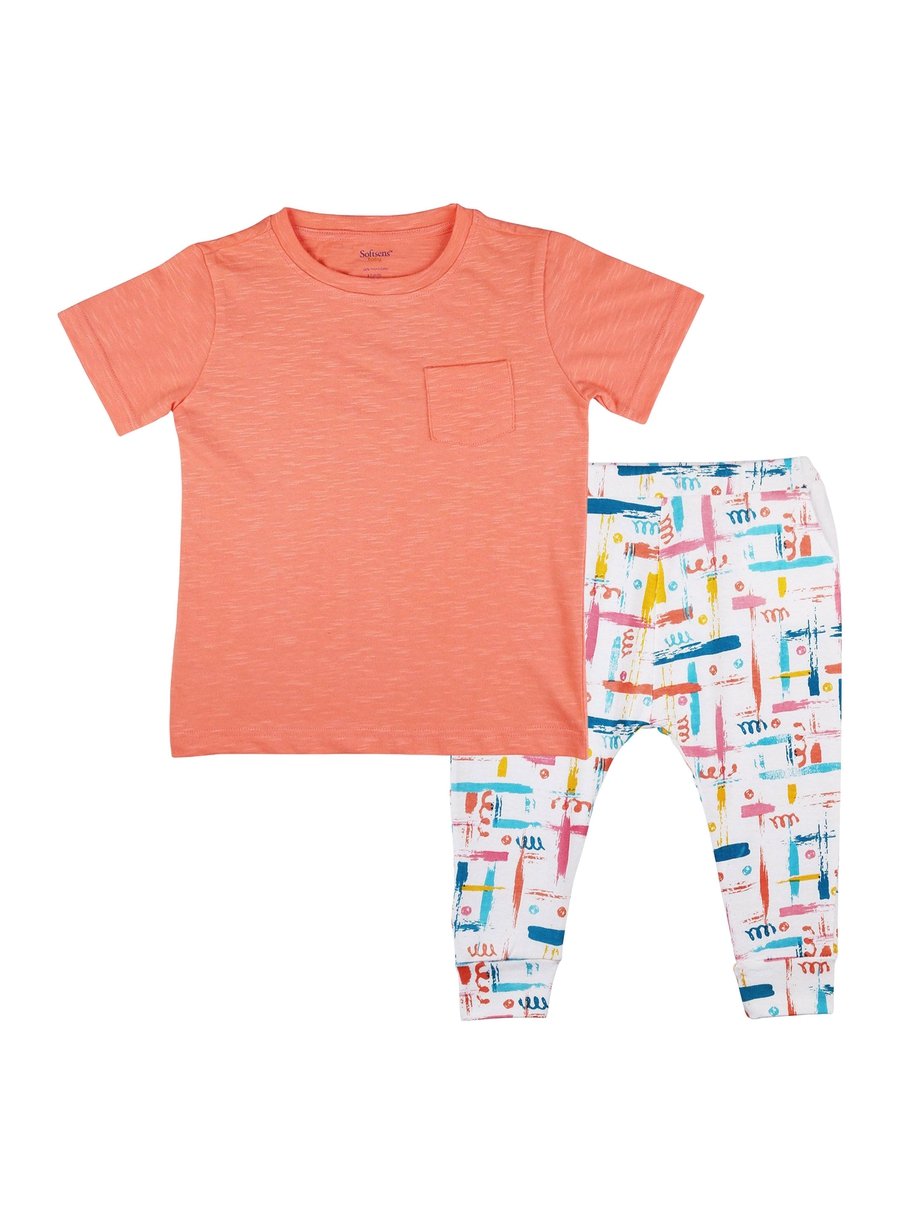 Happy colours come together in this adorable set that includes our soft slub jersey t-shirt & trendsetter pants, both designed from soft & breathable 100% GOTS-certified Organic Cotton.