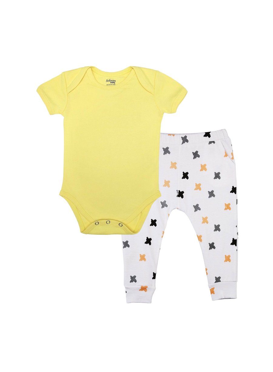 Dress your tiny ray of sunshine in this bright & cheery combo that includes our unisex lemon yellow bodysuit & criss cross pants, both designed from soft & breathable 100% GOTS-certified Organic Cotton.