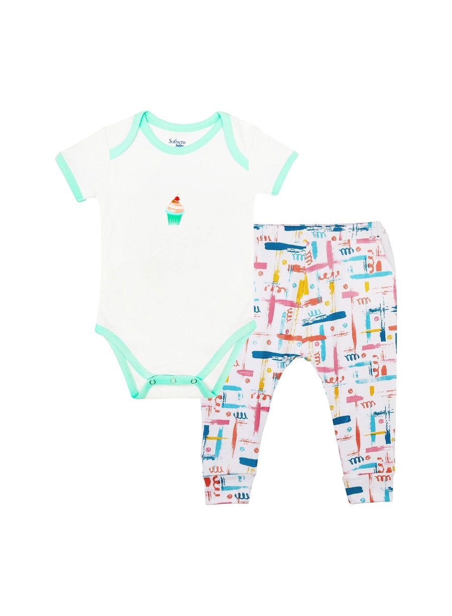 Add some fun & colour to your baby's wardrobe with this sweet combo that includes our cute cupcake bodysuit & trendsetter pants, both designed from soft & breathable 100% GOTS-certified Organic Cotton.