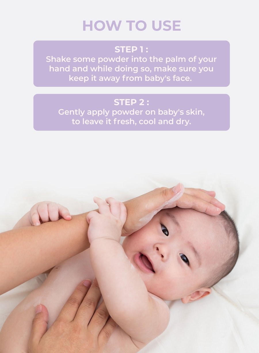 Our mildly-formulated baby powder helps absorb excess moisture to help keep your baby’s skin cool & dry, yet soft & supple.