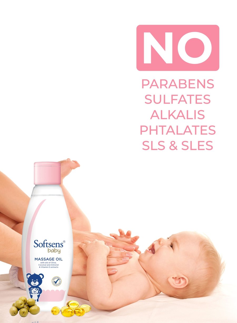 Strengthen baby's bones & muscles with our Softsens Baby calming massage oil that is a nourishing blend of powerful natural oils; olive oil, coconut oil & almond oil.