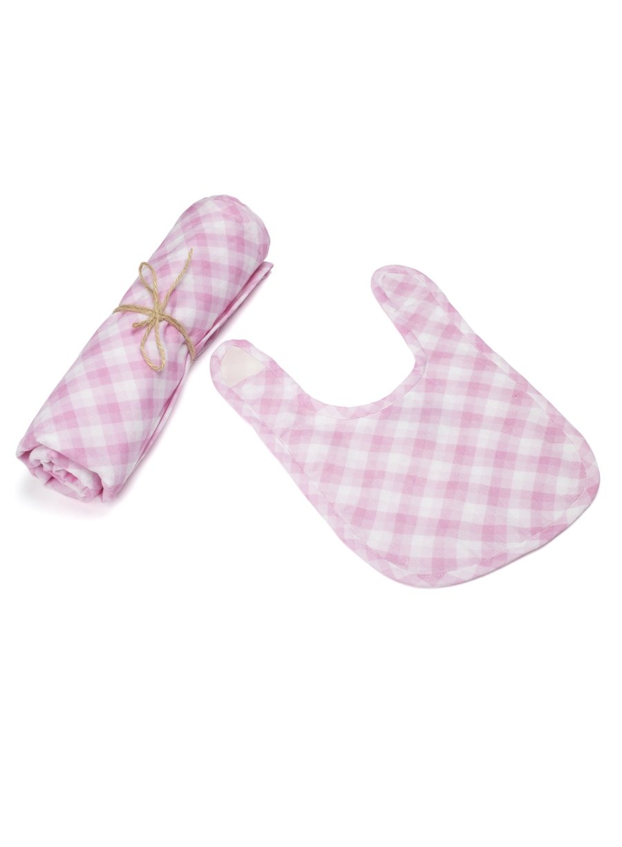 Classic Checks Organic Muslin Swaddle & Bib