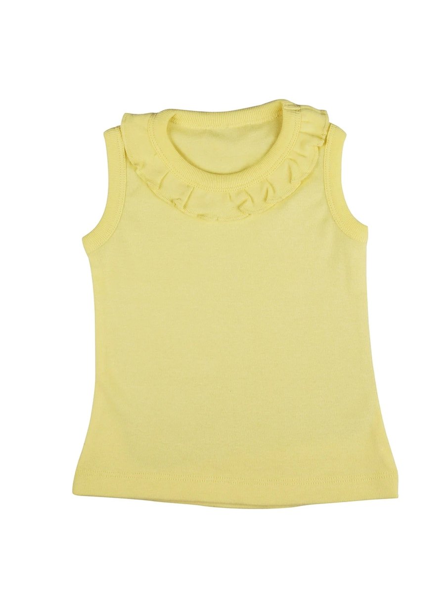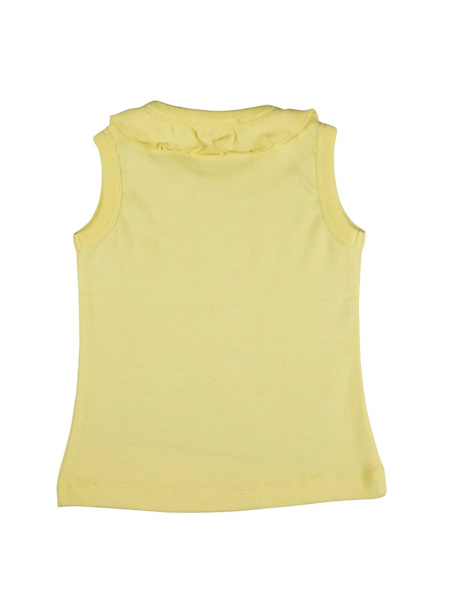 Sleeveless, with a round stretchable ribbed neckline, this soft and long-lasting top will soon become your toddler's favorite go-to outfit.