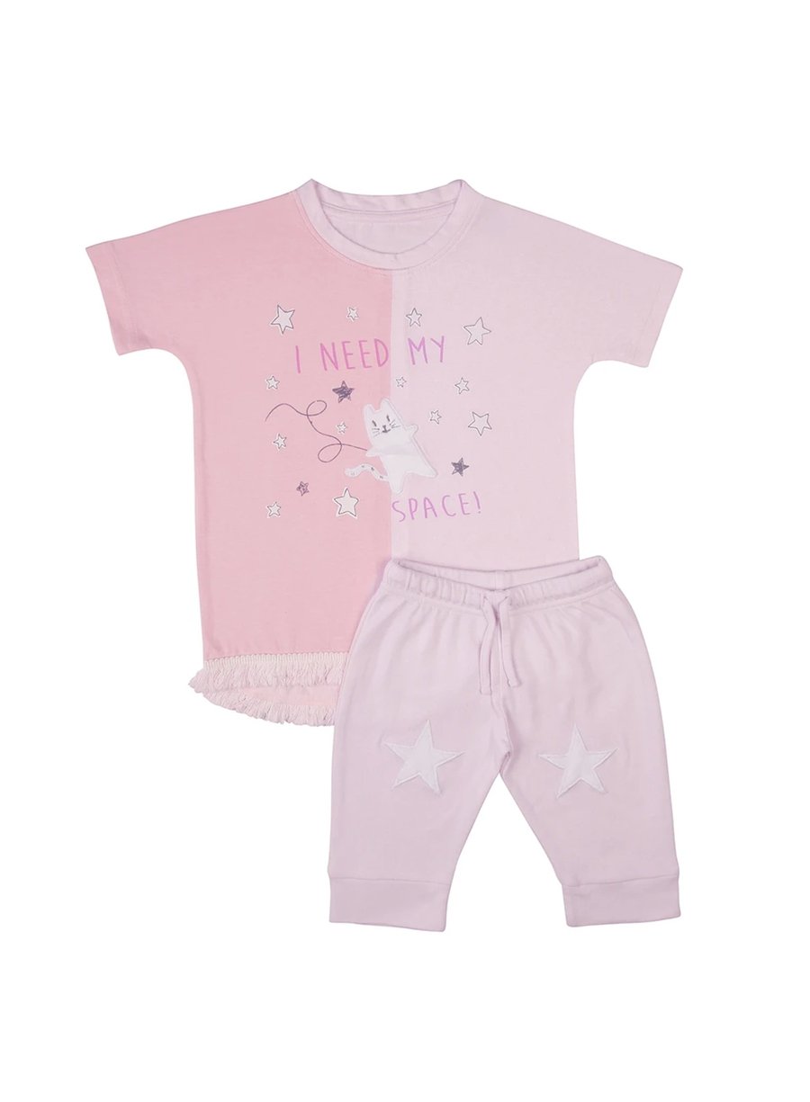 Short Sleeve Fringe Top & Tights Soft Jersey Set Space Cat Pack of 2