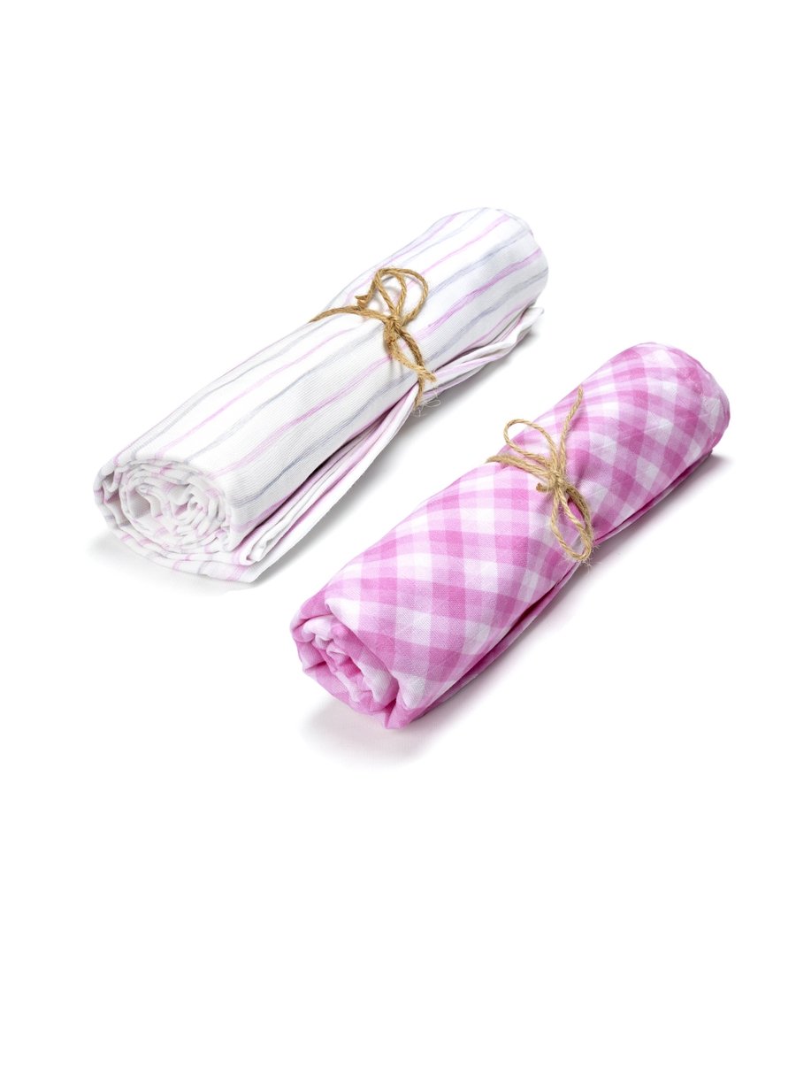 Get cozy with this pack of 2 simply sweet organic muslin cotton swaddles that include our Classic Checks and Simply Stripes muslin swaddles.