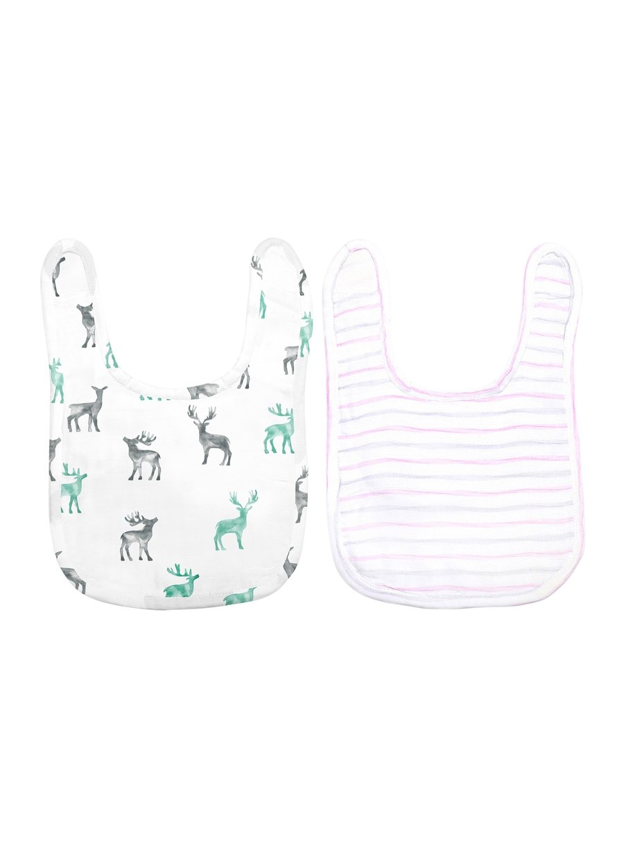 Taking care of everyday messes is so much easier & convenient with this pack of 2 organic muslin bibs, that include our Reindeer Magic and Simply Stripes prints.