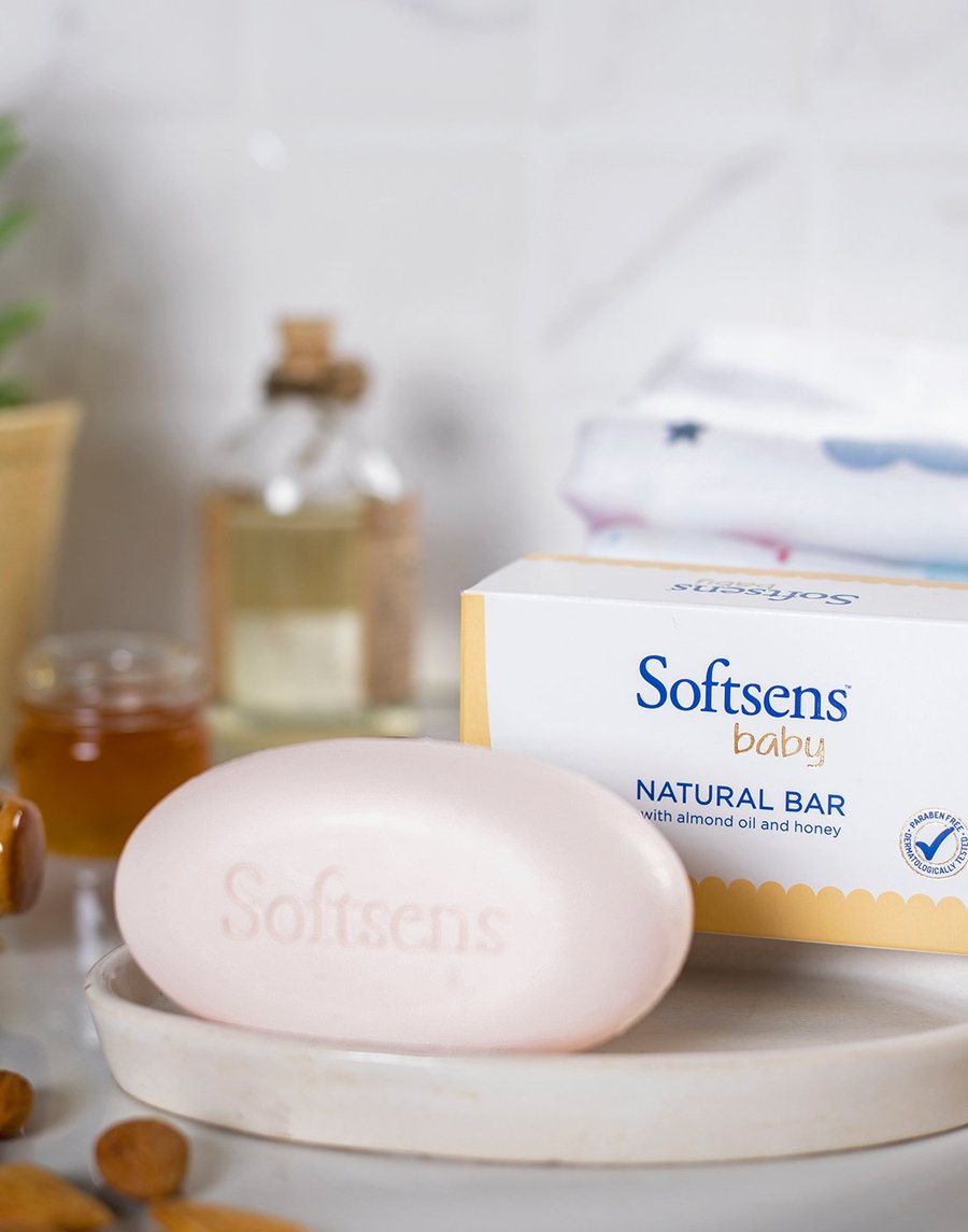 Softsens Baby Natural Bar is a deeply nourishing baby soap for visibly healthier and supple skin. Formulated with the goodness of rich emollients like natural almond oil and pure honey, it gently cleanses and nourishes your baby’s delicate skin and locks in moisture, leaving behind soft, smooth, hydrated skin and a happy, delighted baby!