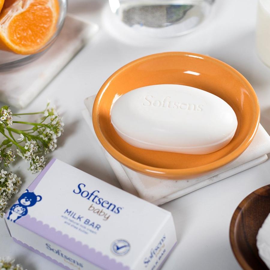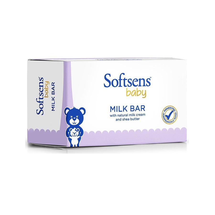 Softsens Baby Milk Bar soap is a delightful blend of love, natural moisturizers and gentle cleansers.Enriched with Natural Milk Cream and Shea Butter, this ultra-mild paraben free soap bar, gently cleanses delicate baby skin without drying it out.