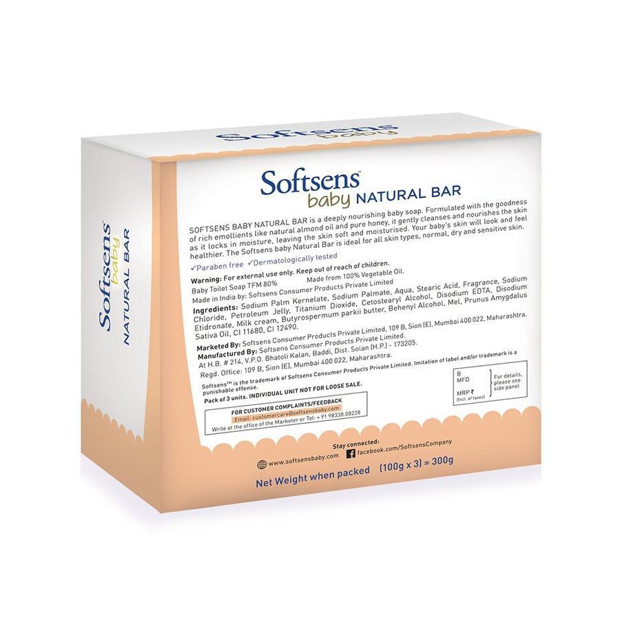 Say goodbye to dry patches, rough skin and eczema that can make your baby uncomfortable, itchy and cranky! Softsens Baby Natural Bar soap is an ultra-mild, paraben free, deeply nourishing baby bar soap, which will give dry and dehydrated skin soothing relief. It is formulated with with the goodness of rich natural emollients like Almond Oil and pure Honey that gently cleanse, nourish and hydrate your baby’s delicate skin and lock in moisture, leaving behind perfectly soft and smooth, freshly scented skin, and a happy delighted baby!